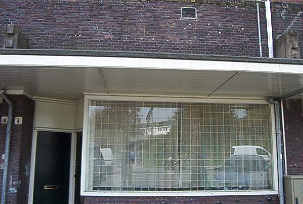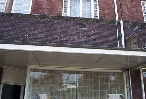 WILTON. Gele verfresten en opgevulde bevestigingsgaten van weggehaalde losse letters.