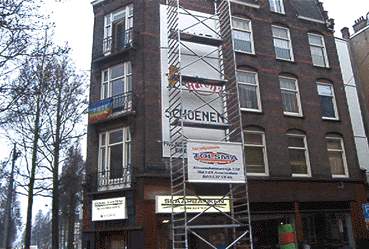 Haarstraat werd in Maart 2005 begonnen met herstel van de gevelreclame.