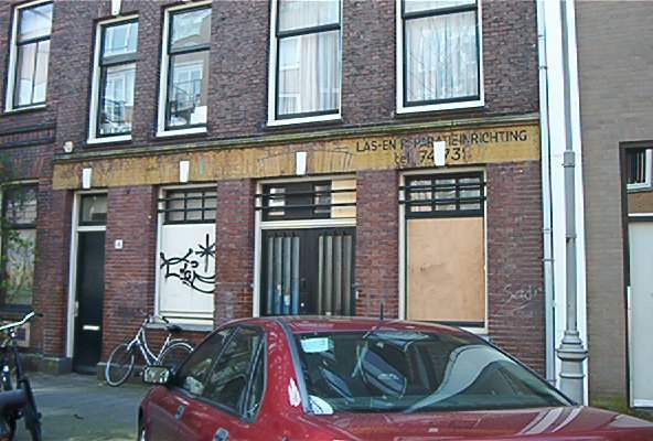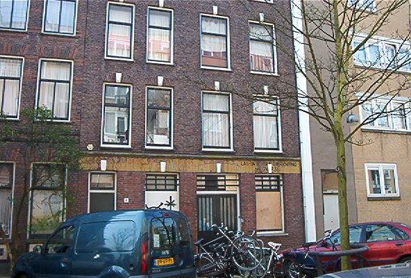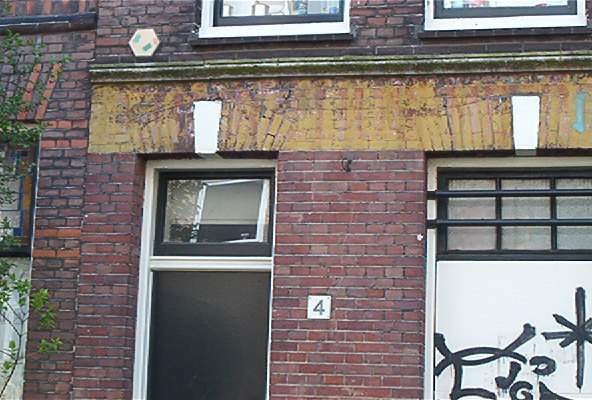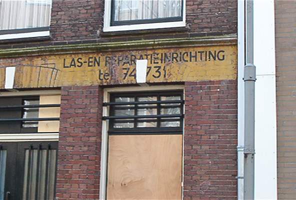 bovenwoningen, lijken ook nog delen van een opschrift in wit te schemeren.