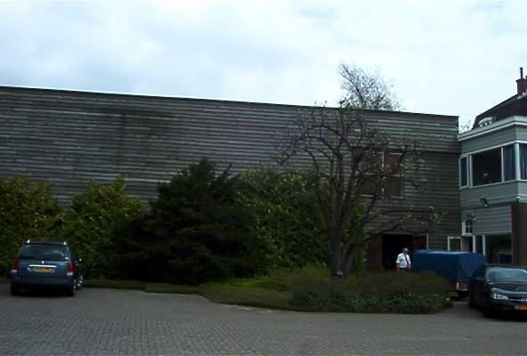 SCHEEPSBOUWWERF DE VALK / GEBR.HINLOOPEN / DEKSCHUITEN TE HUUR. Deze reclameschildering is geheel verdwenen en ook de rest bestaat niet meer.